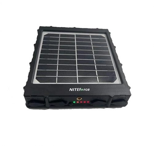 NITEforce Solar Power Panel aurinkopaneeliakku on yhteensopiva lähes kaikkien markkinoilla olevien riistakameroiden, ruokintalaitteiden tai kalatutkien kanssa. Aurinkopaneeliakun älykäs sisäänrakennettu virtamuuntaja muuntaa ulostulotehon virtaporttiin (6 V, 9 V tai 12 V) sopivaksi, mikä antaa kytkettyyn riistakameraan tasaisen käyttövirran.