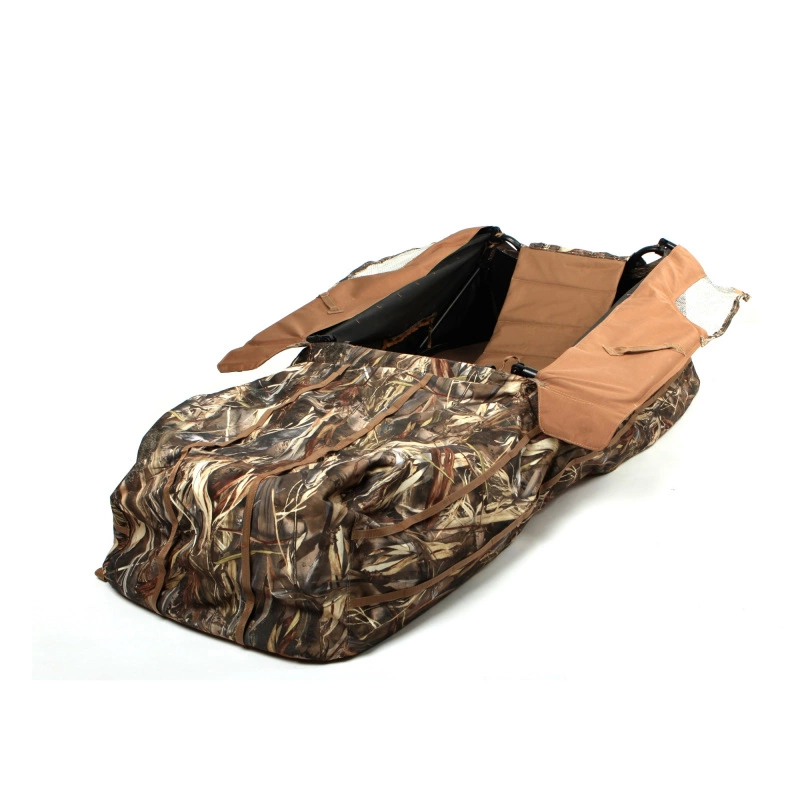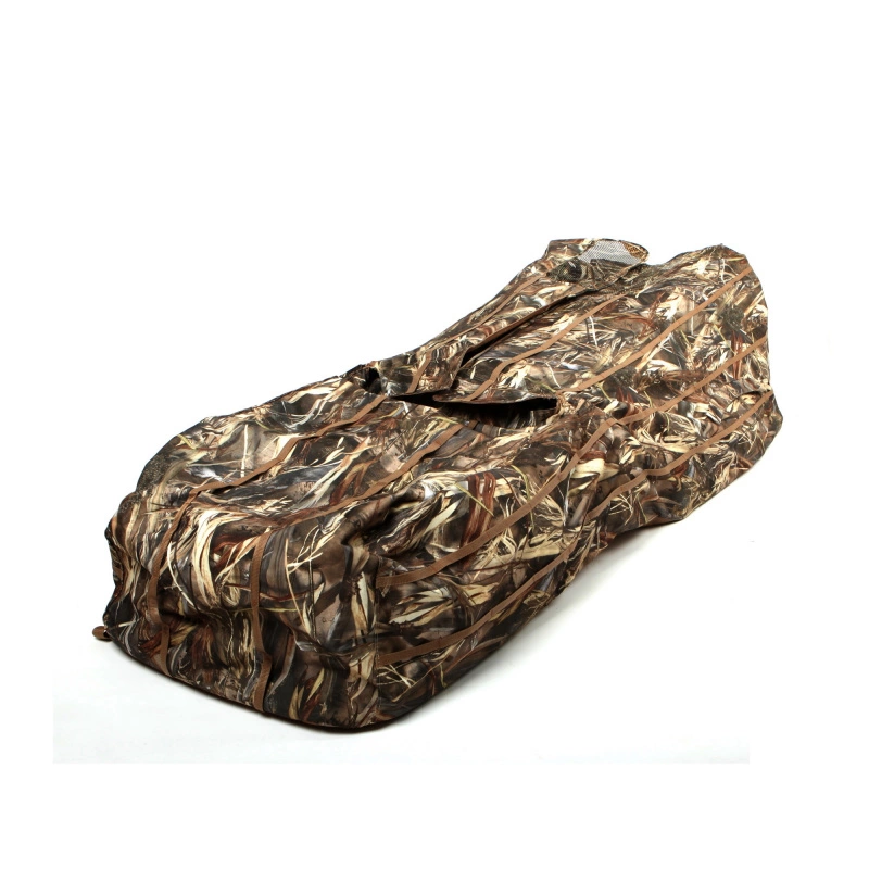 Kätevä makuupiilo sorsien yms. metsästykseen. Koko 210x90x38cm. Materiaali 300D polyester jossa PU kalvo. Piilon pohja on 300D Polyesteriä vedenkestävällä PVC kalvolla. Makuupiilon runko on metallia jonka halkaisija on 22mm ja vahvuus 1mm. Pulveri maalattu. Camo kuosi on erikois 3D tekniikalla toteutettua. Kuljetuskoko noin 96x67x14cm. Nopea ja helppo kasata. Pohjassa hihna jolla piiloa voi kantaa myös kasattuna. Paino 10kg.