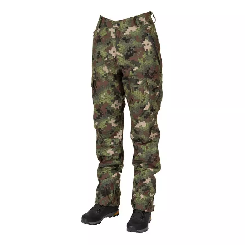 Hiljaiset housut kaikenlaiseen metsästykseen kaikissa sääolosuhteissa. Ulkokangas on pehmeää, harjattua mikrokuitua, mikä tekee siitä erittäin mukavan ja vedenpitävän kalvon teipatuilla saumoilla.
