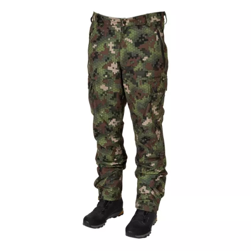 Hiljaiset housut kaikenlaiseen metsästykseen kaikissa sääolosuhteissa. Ulkokangas on pehmeää, harjattua mikrokuitua, mikä tekee siitä erittäin mukavan ja vedenpitävän kalvon teipatuilla saumoilla.