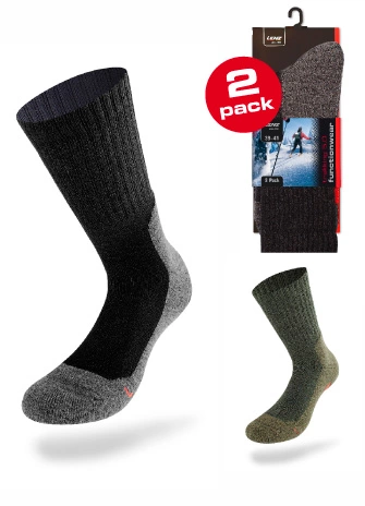 Lenzin Trekking 5.0 -sukkapaketti sisältää 2paria musta-harmaita sukkia.